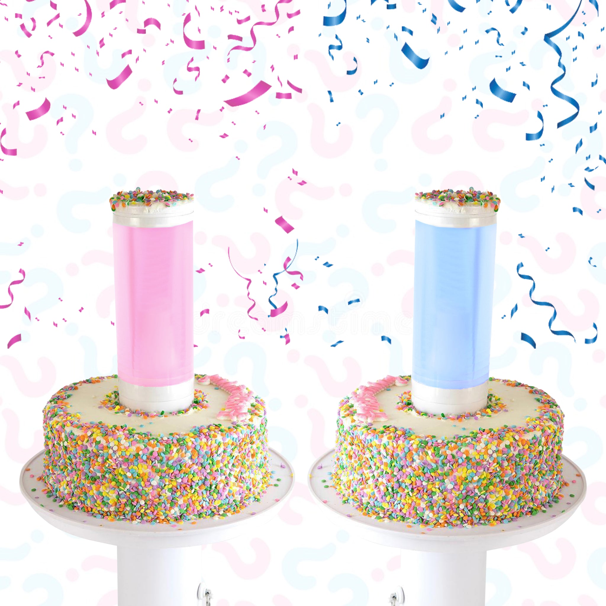 Before you put your pre-made cake onto the popping cake stand just place a gift, whether it's confetti, streamers, cash, a new phone, lollies, or other awesome stuff into the tube in the center of the cake stand. Then just press the tube down into the launching mechanism.
