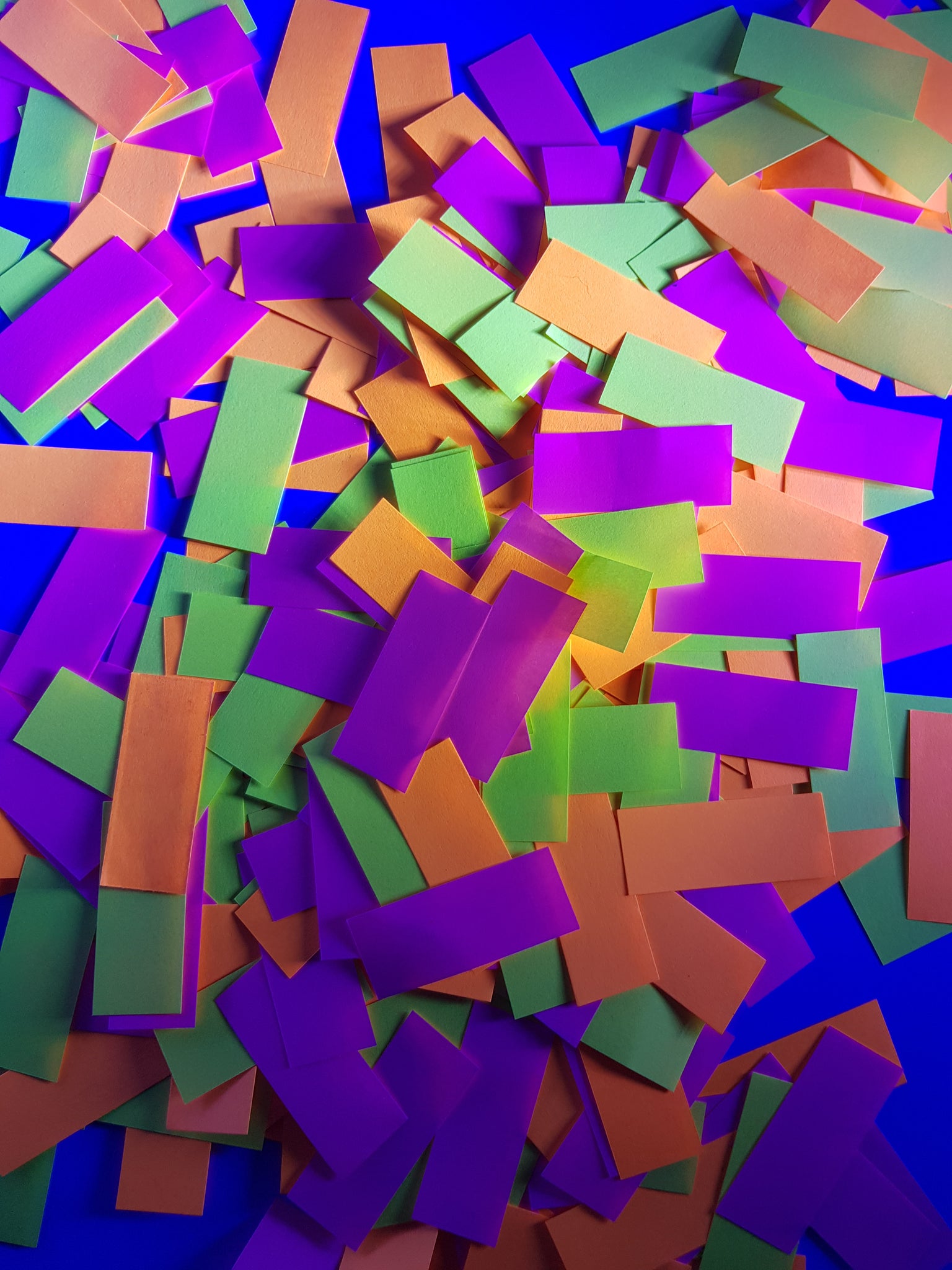Our UV reactive fluro confetti is great for brightening up large areas such as dance floors, parties etc. It also produces an amazing UV effect when thrown around.